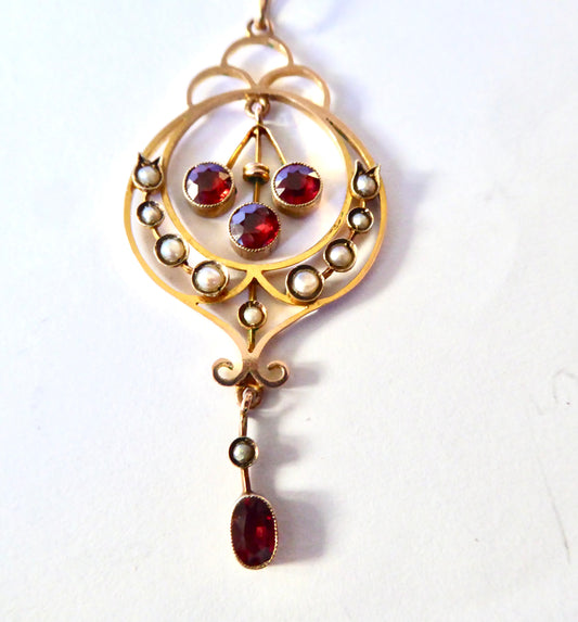 9ct. Garnet & Pearl Pendant