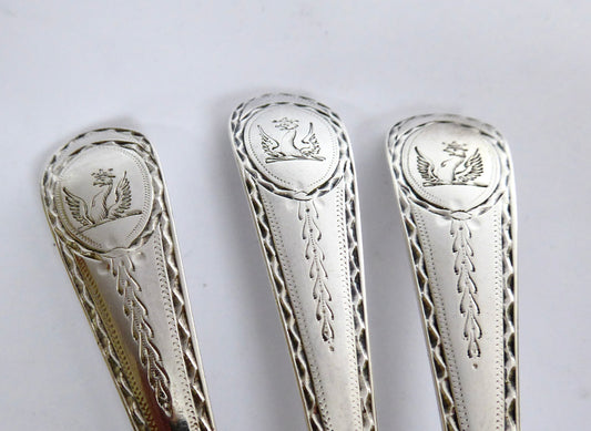 Set of 12 Irish Bright Cut Dessert Spoons C. 1777
