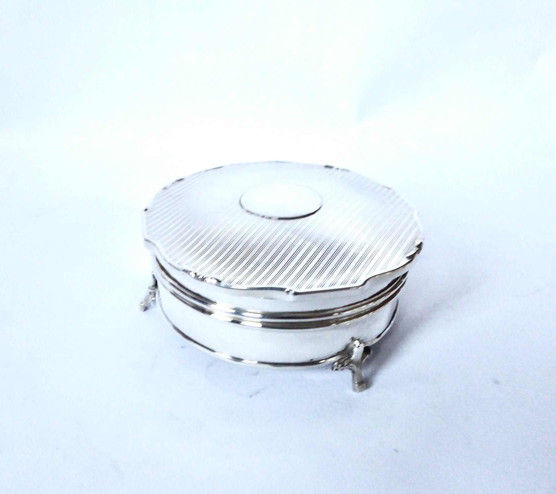 Antique Silver Jewellery Box with engine turned engraving on cover.