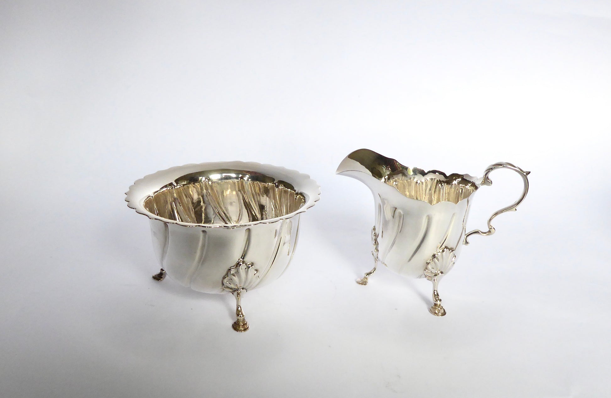Antique Silver, fluted design, Milk Jug & Sugar Bowl