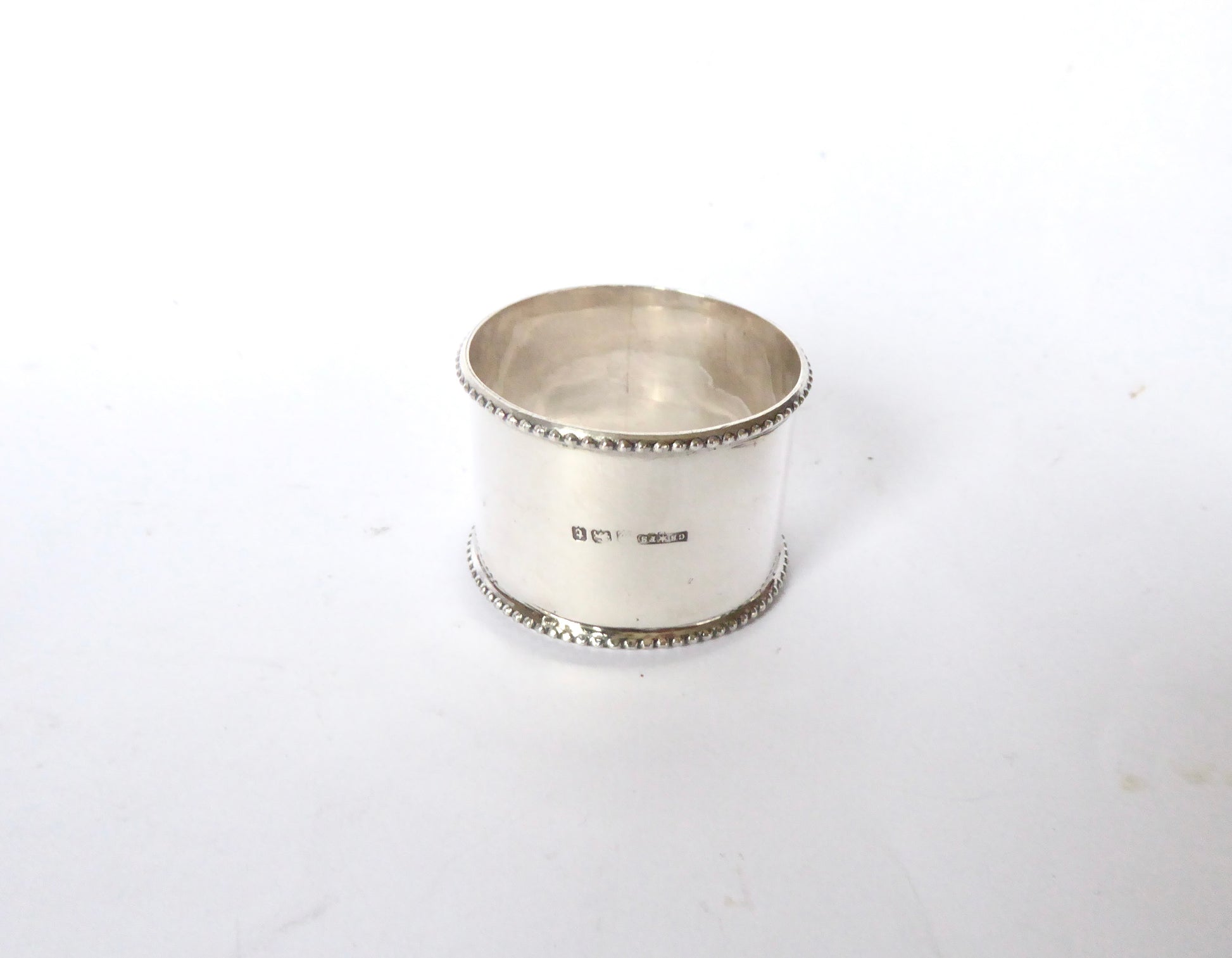 Plain Antique Silver Napkin Ring with a beaded border