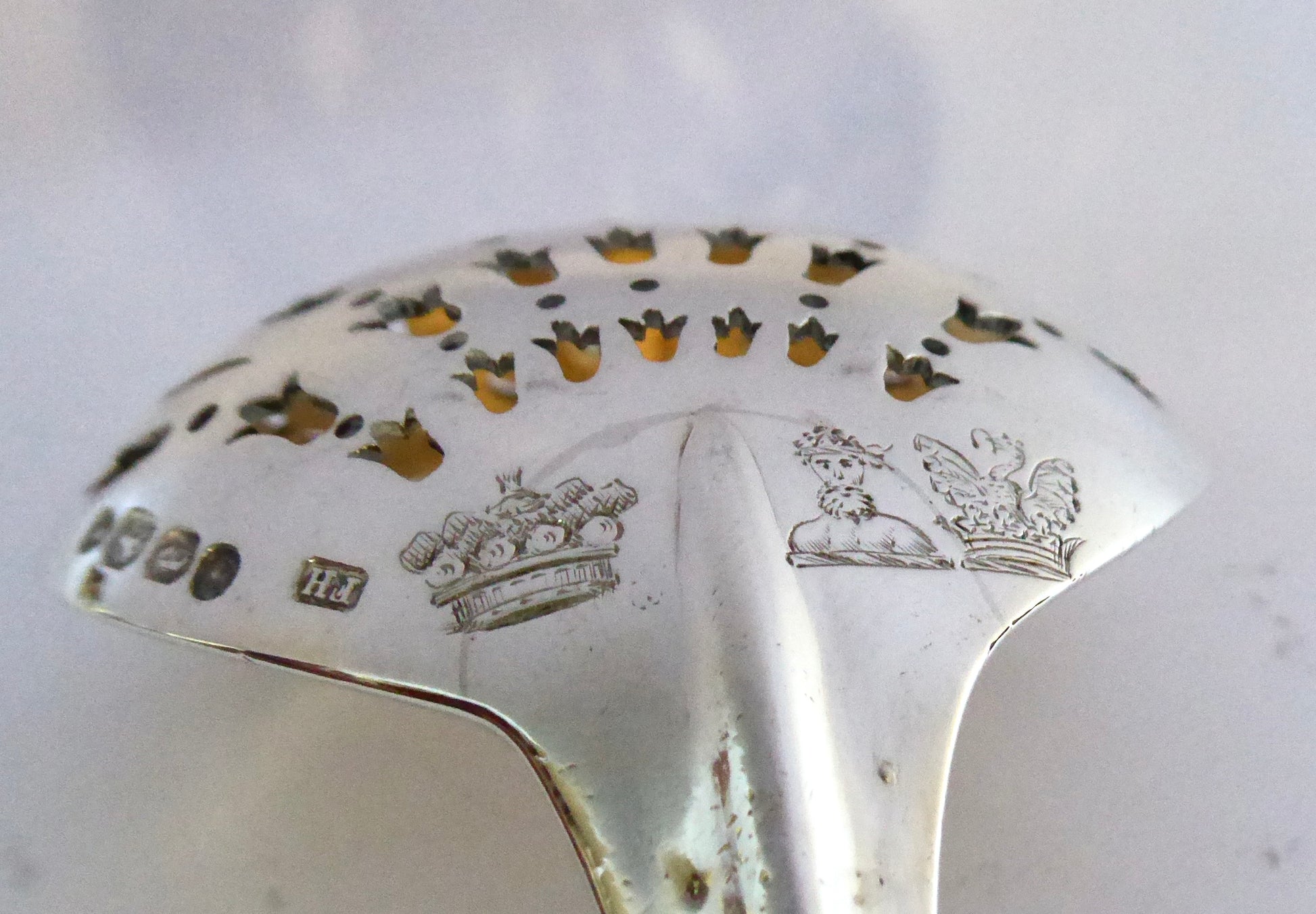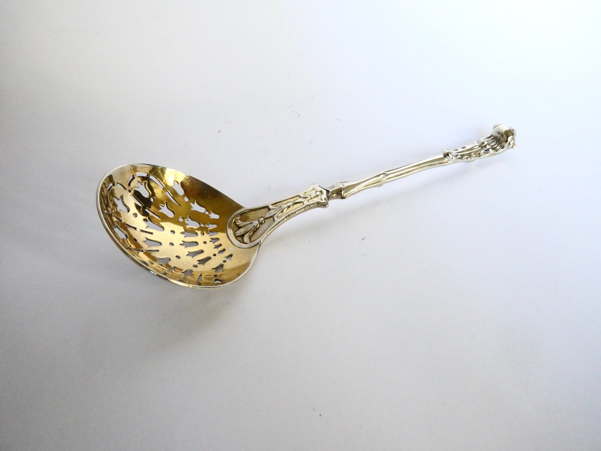 Unusual Heavy Silver Sifter Spoon with gilded Bowl