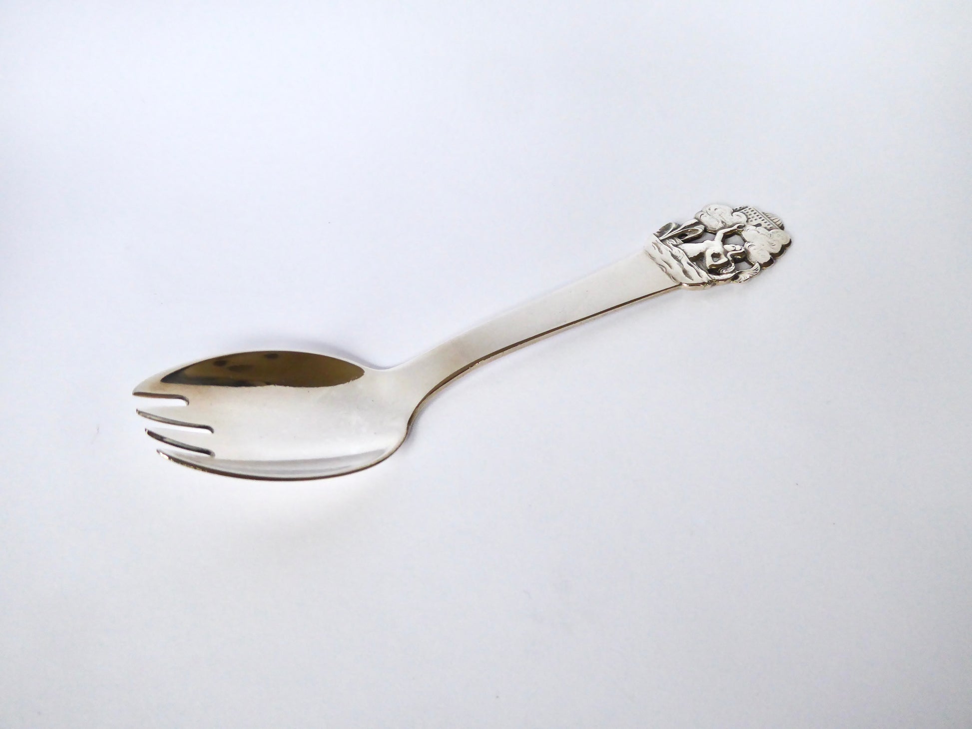 Unusual Art Deco Silver Pickle Fork/Spoon. Handle has a figure of a Mermaid.