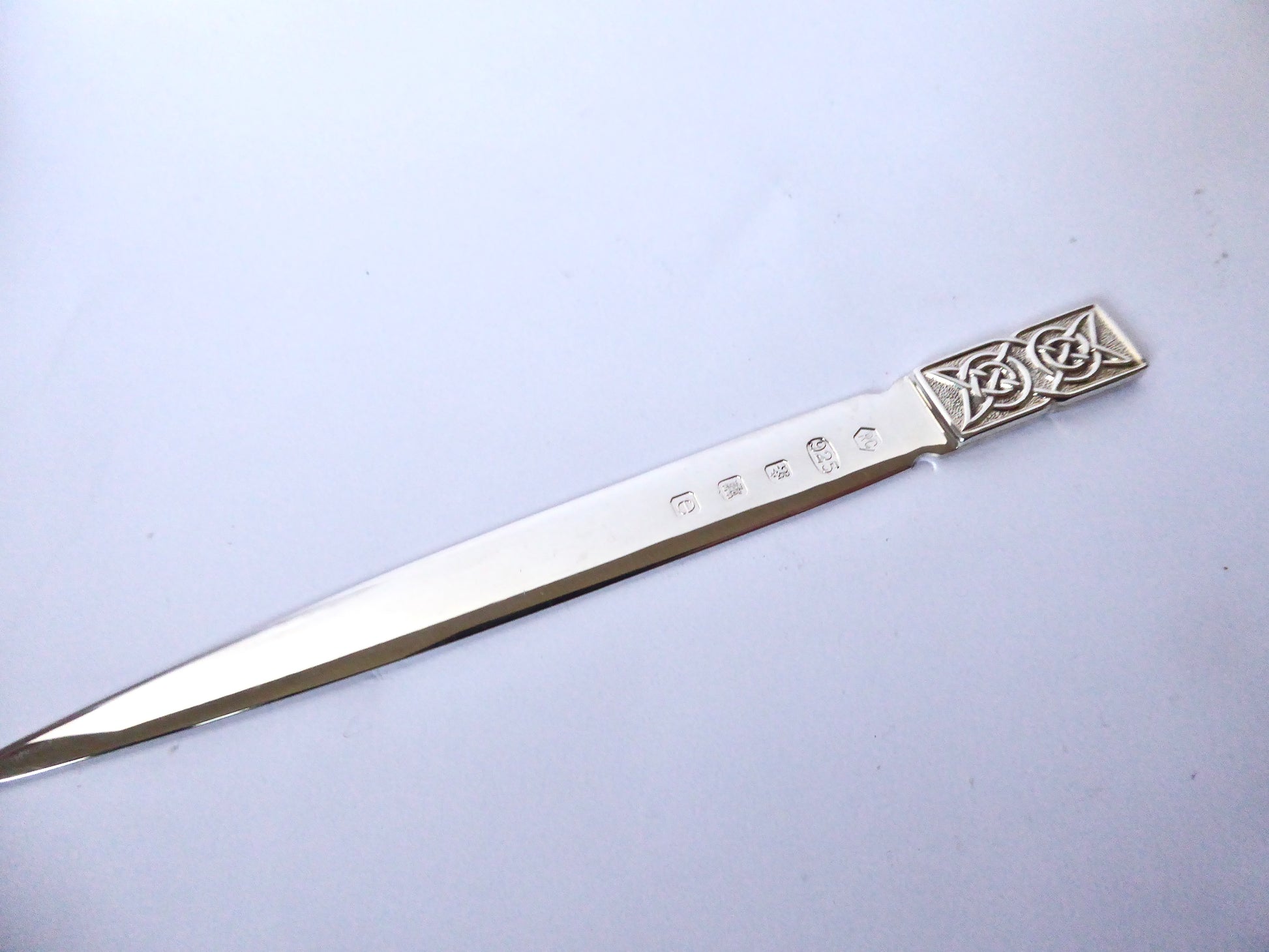 A Scottish Silver Celtic Pattern Letter Opener. Original box