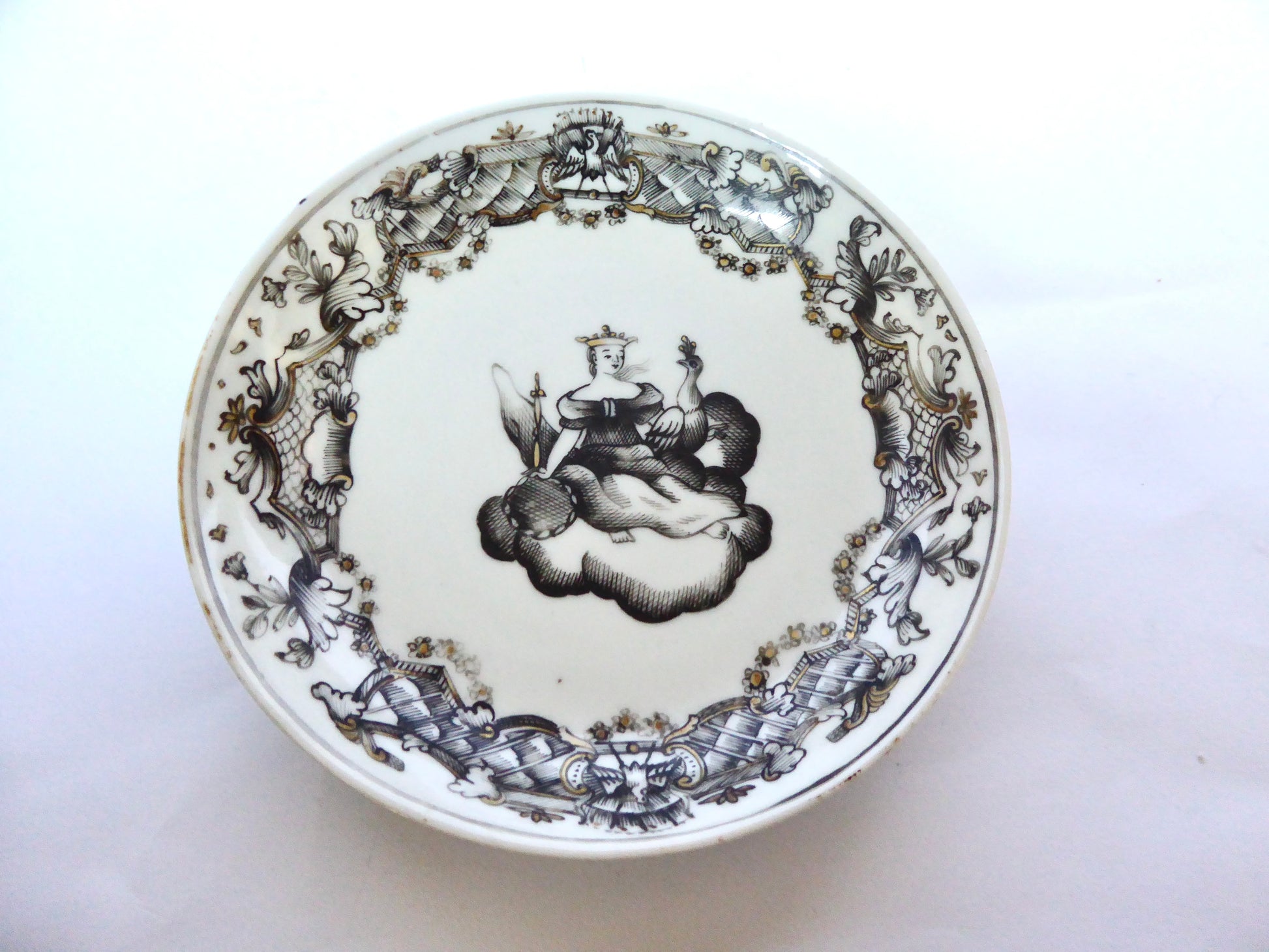 Rare 18th. Century Chinese Export grisaille Saucer - ' Juno and The Peacock '