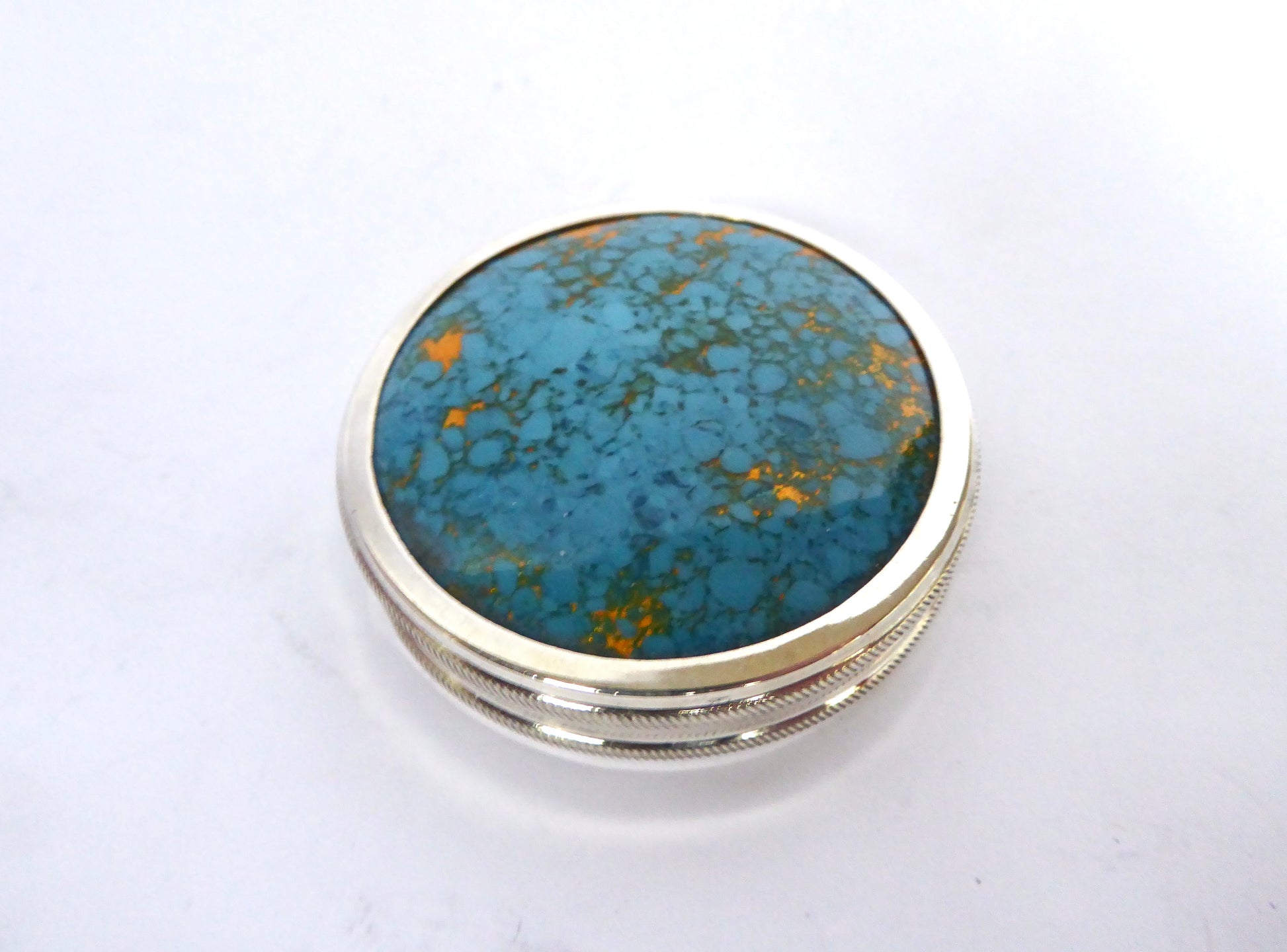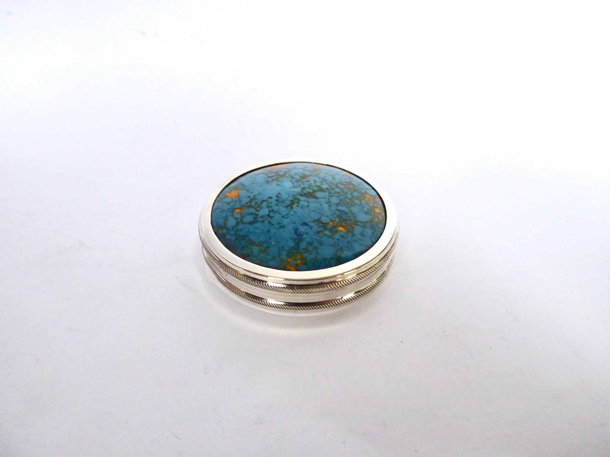 Unusual Silver and Turquoise circular Box
