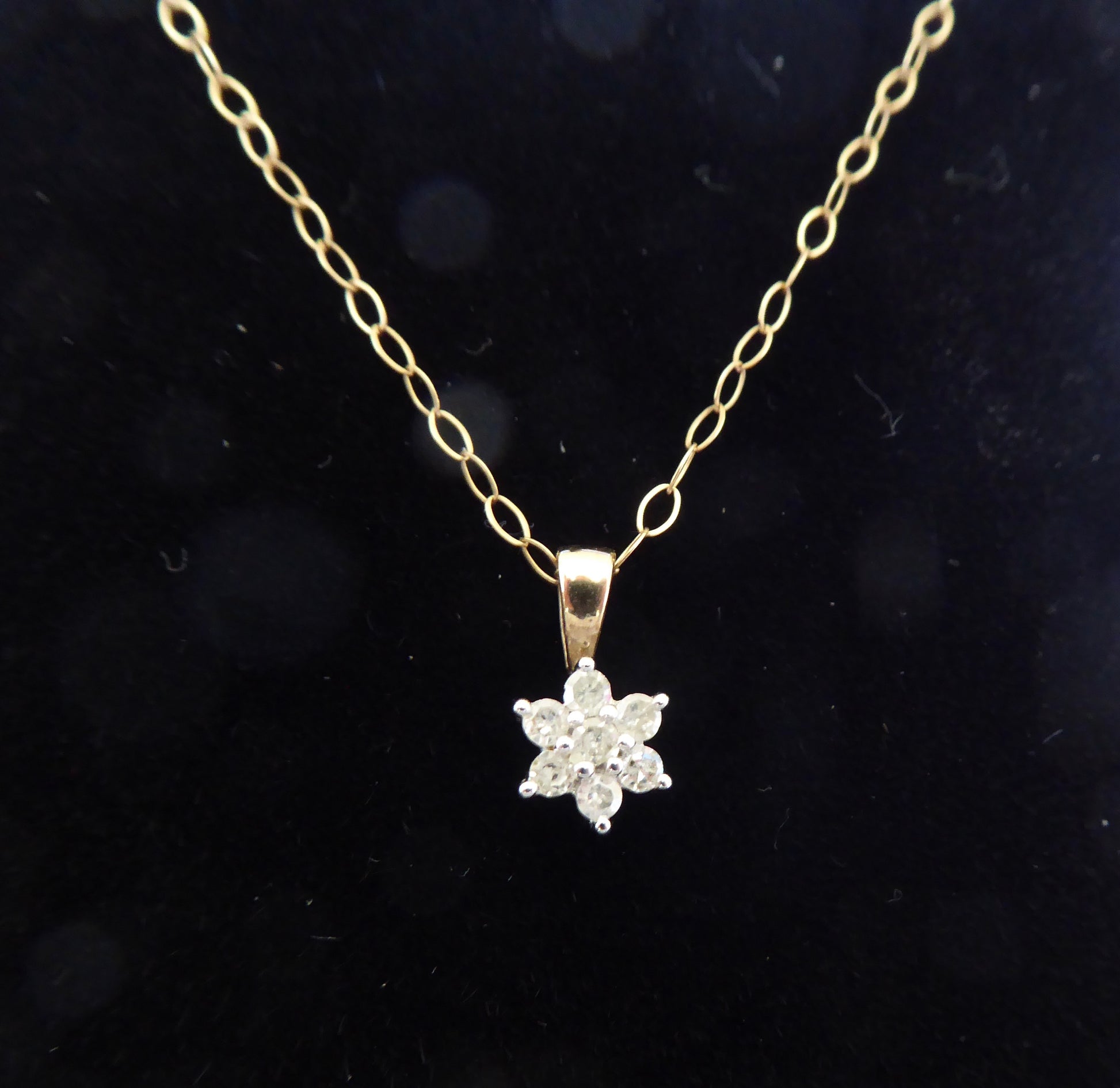 Vintage 9ct. Gold and Diamond Star shape Pendant on a 9ct. Gold chain