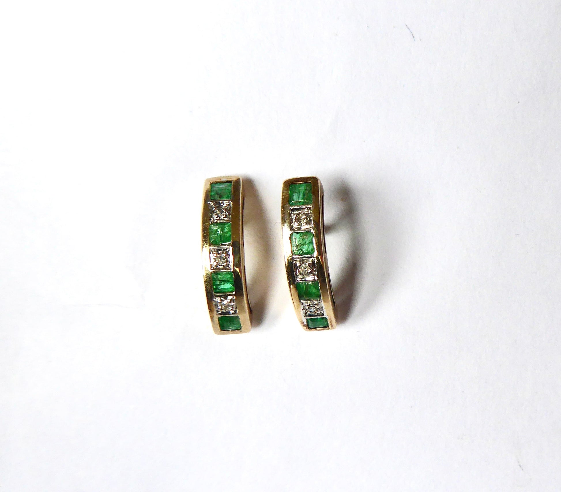 Pair of 9ct. Gold Emerald and Diamond Earrings