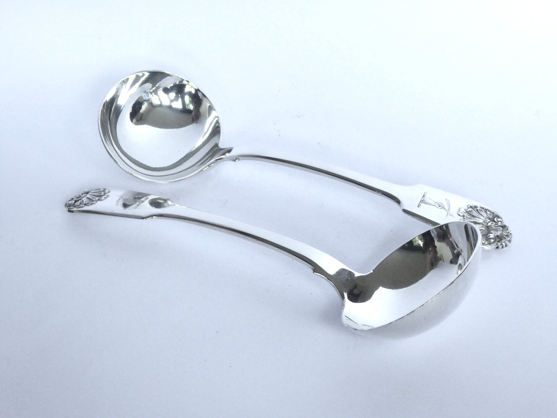 Pair of Antique, heavy, Fiddle & Shell Pattern Silver Ladles