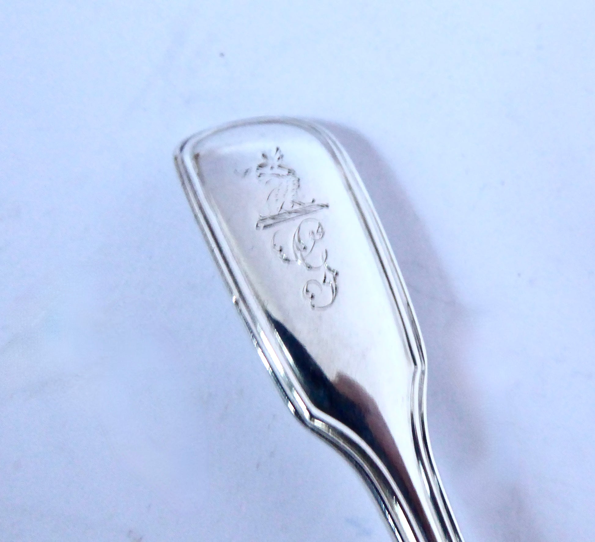 Victorian Silver Fiddle & Thread Pattern Mustard Spoon with a Crest and Initial G