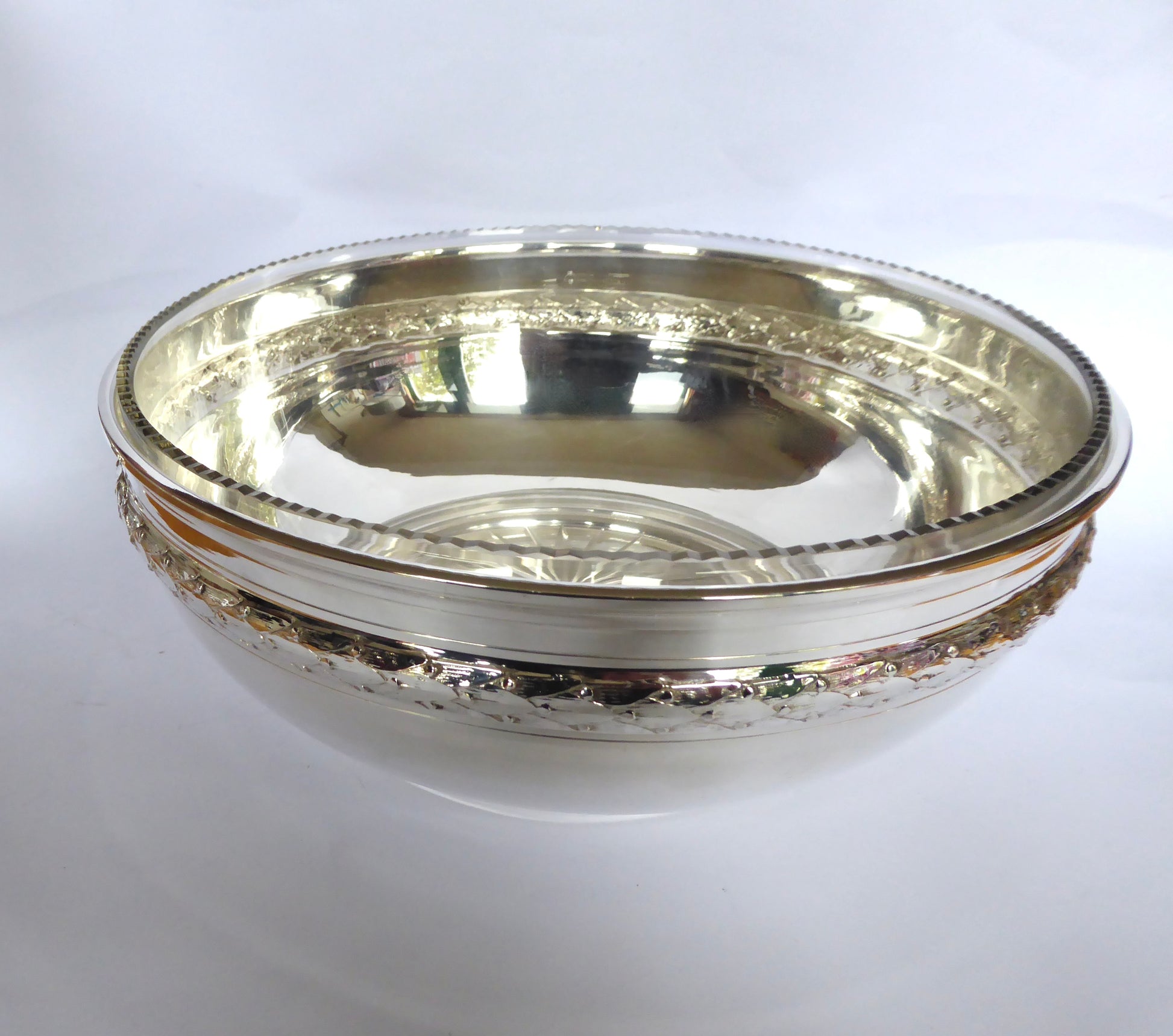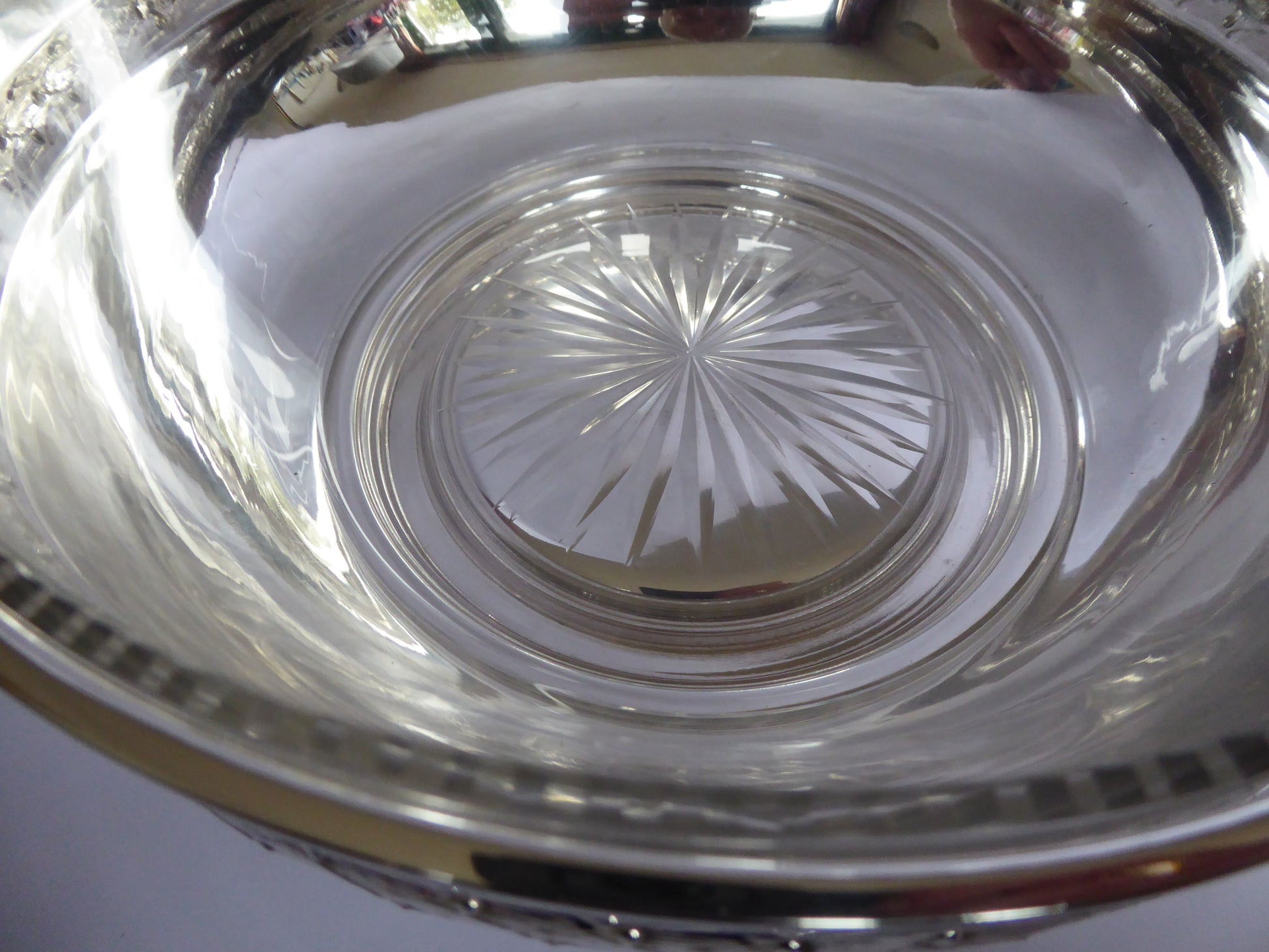 Antique German circular Silver Bowl with Glass Liner