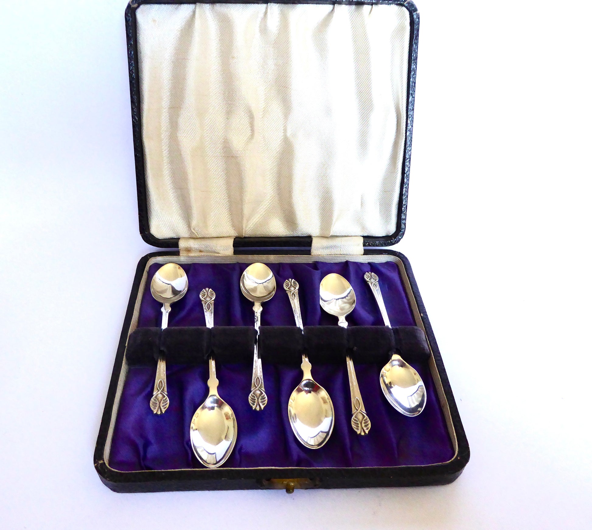 Boxed set of six Arts and Crafts design Silver Coffee Spoons