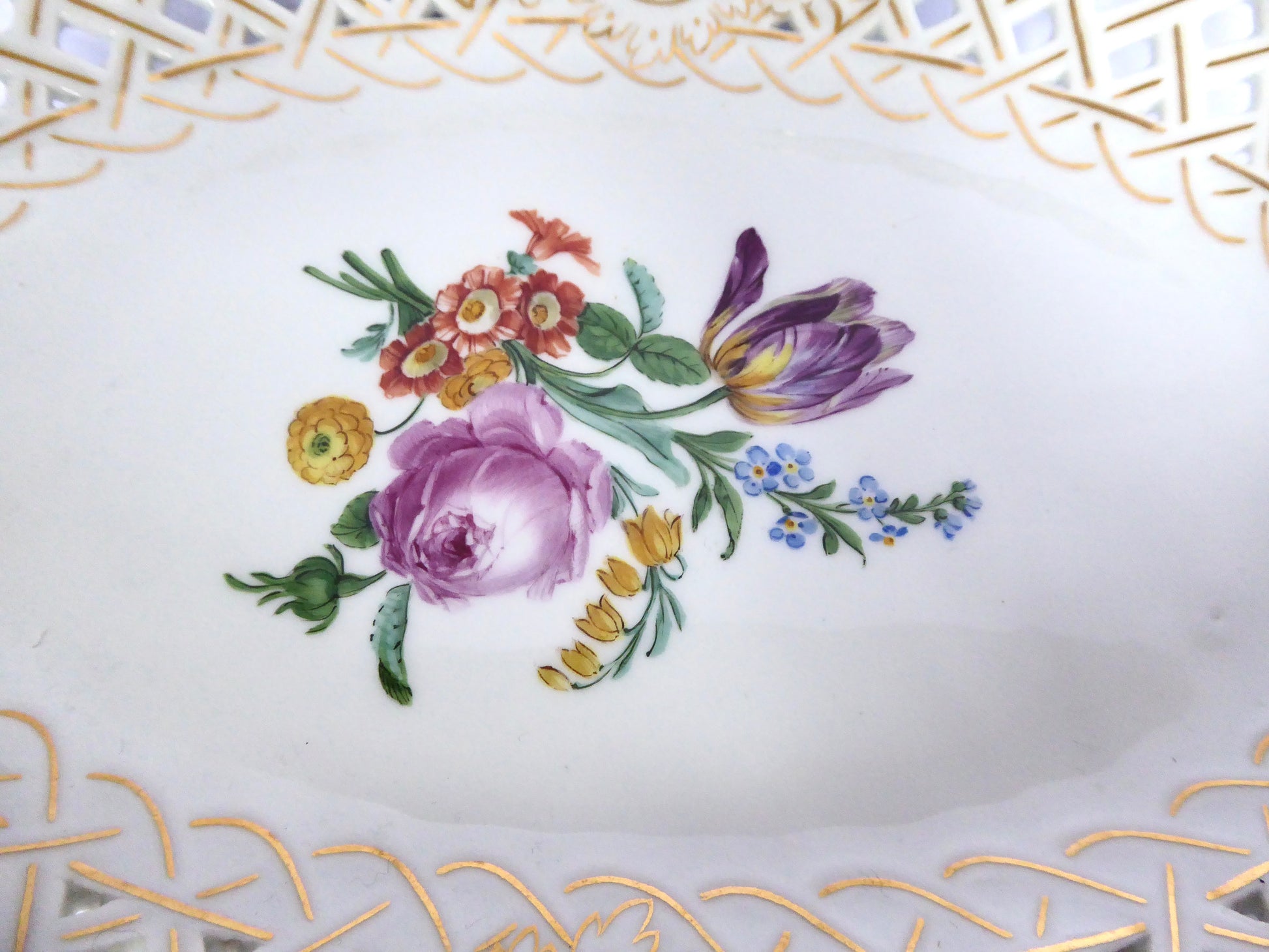 Meissen pierced oval Dish. Hand painted.