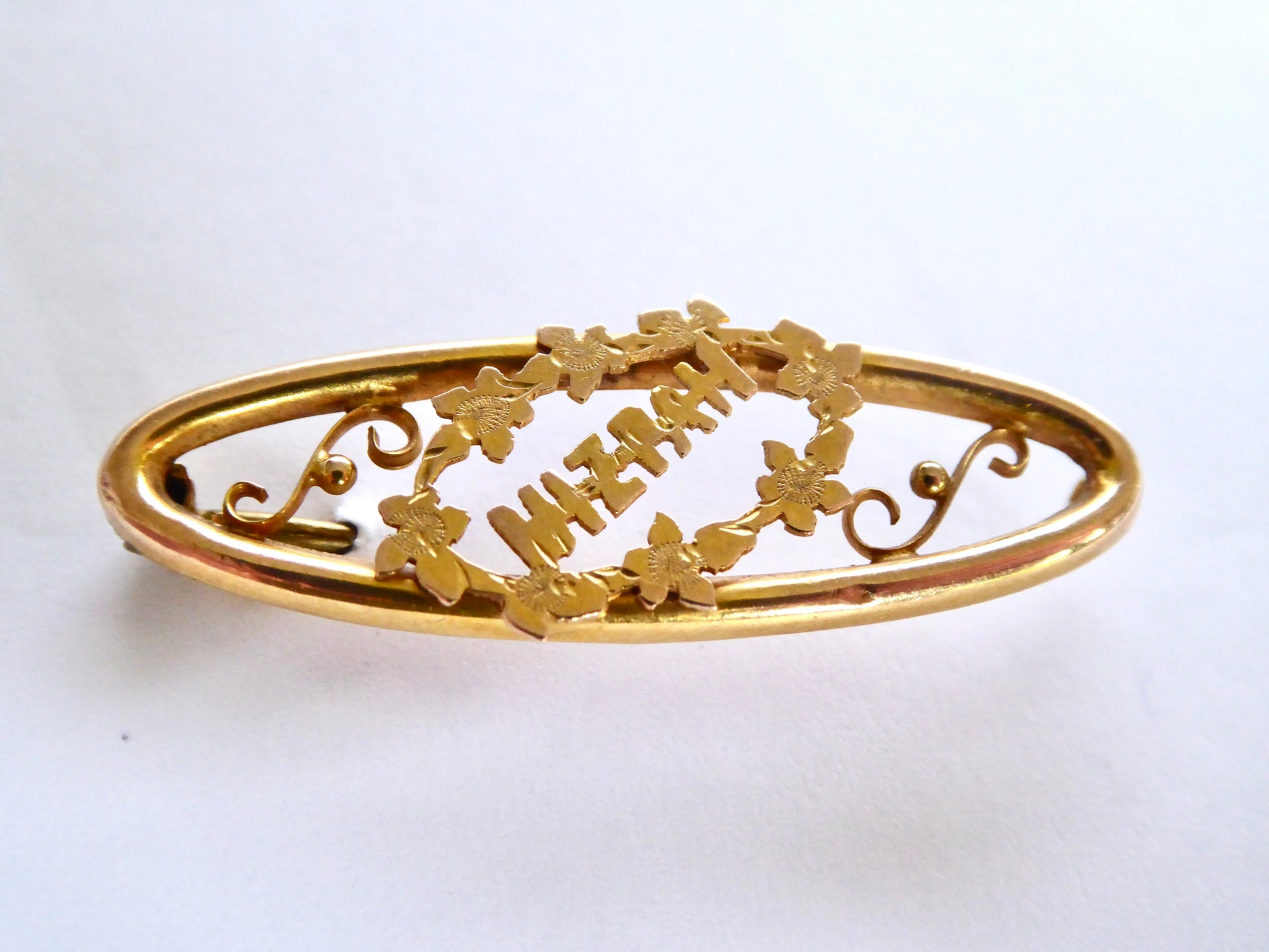 Antique 9ct. Gold, oval, Mizpah Brooch.