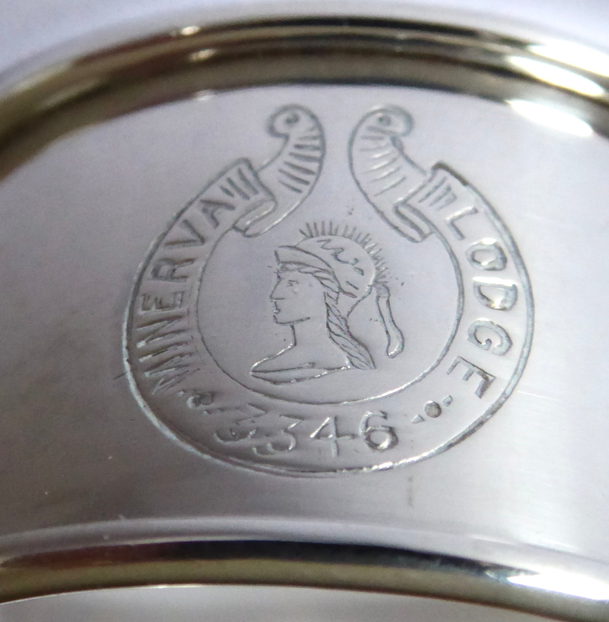 Plain Silver Napkin Ring with Crest of Minerva Lodge 3346