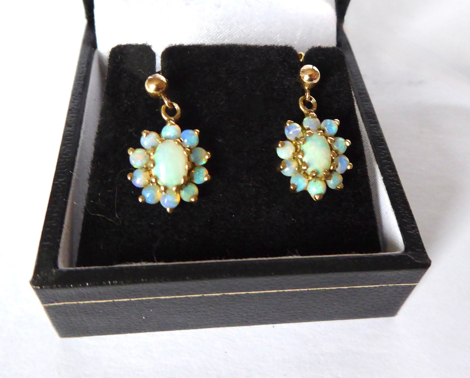 Fine pair of 9ct. Gold and Opal Cluster Earrings