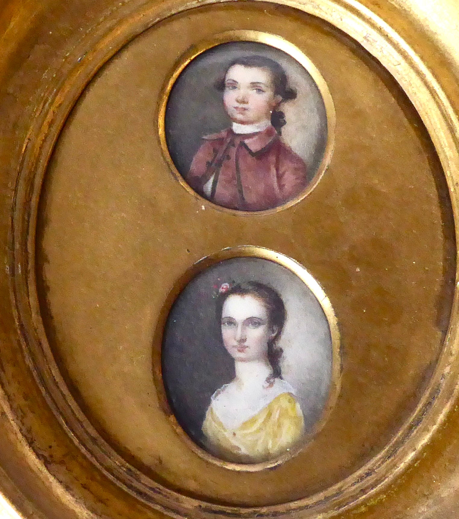 Pair of mid 18th Century Portrait Miniatures ,on Ivory, of a Girl and a Boy