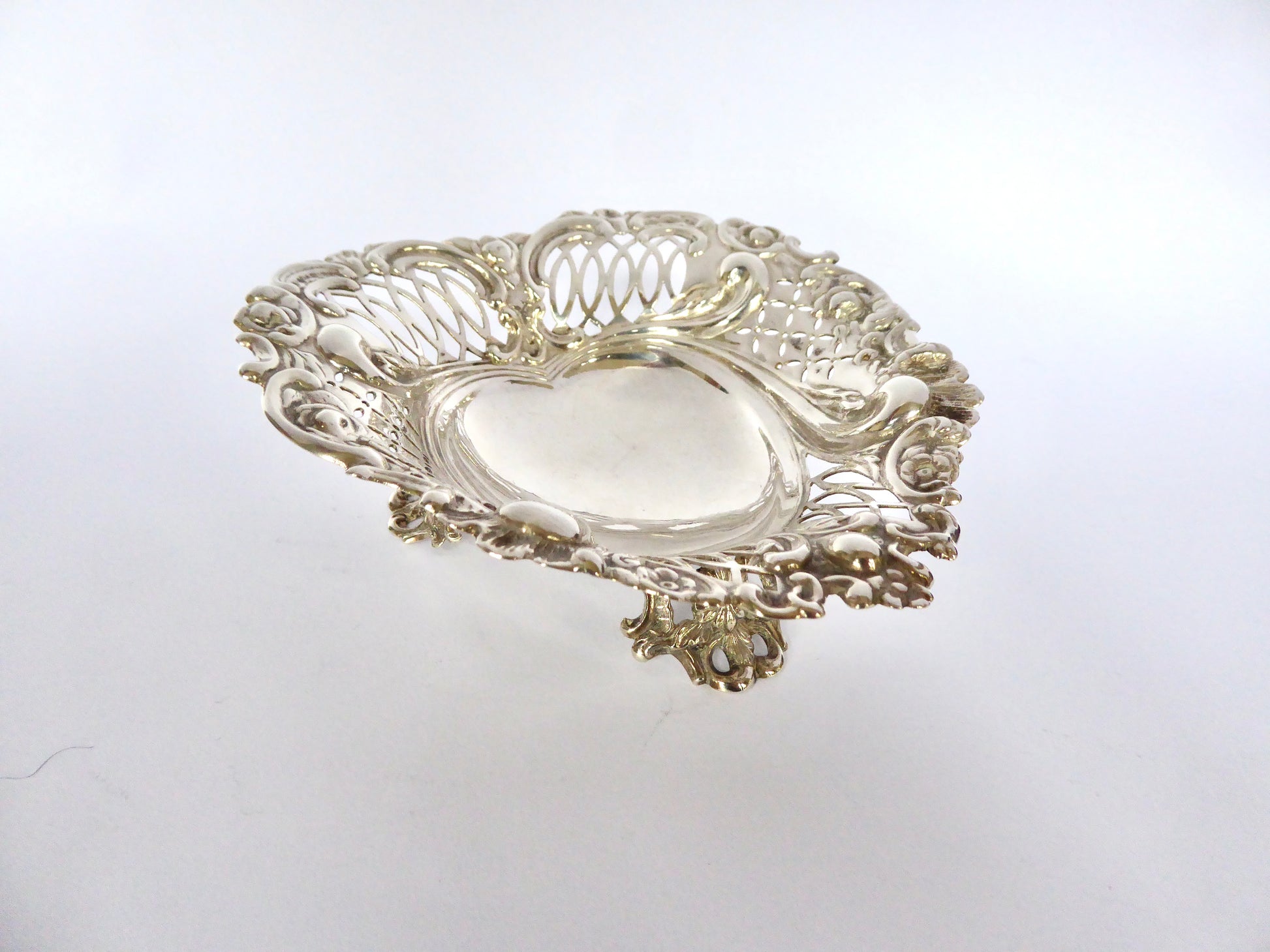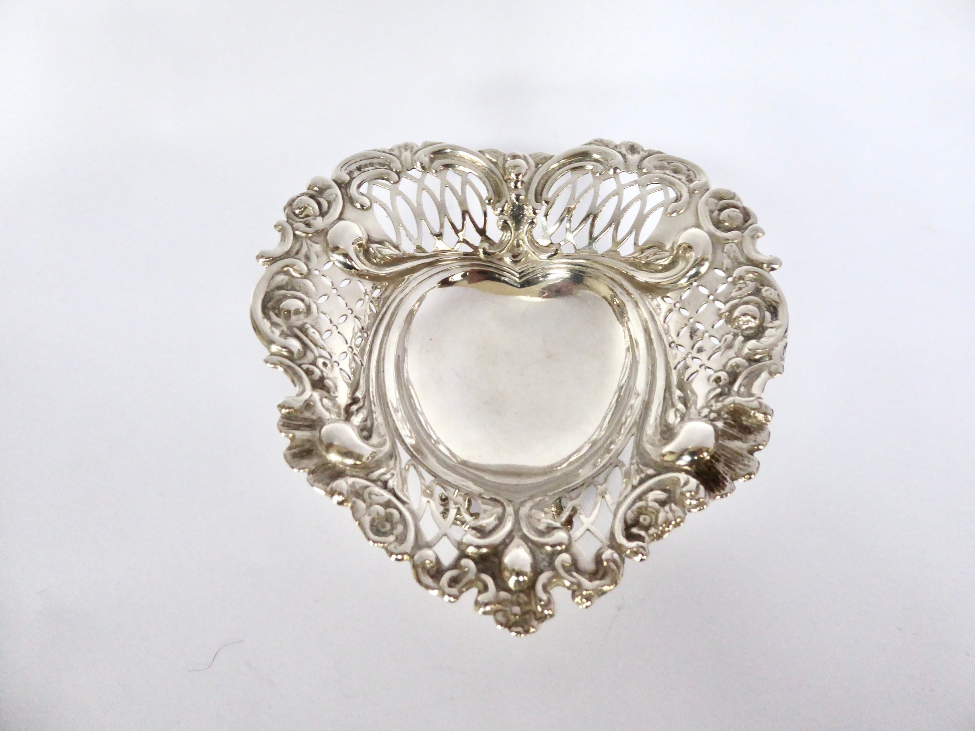 Victorian pierced and embossed, heart shape, Silver Dish.