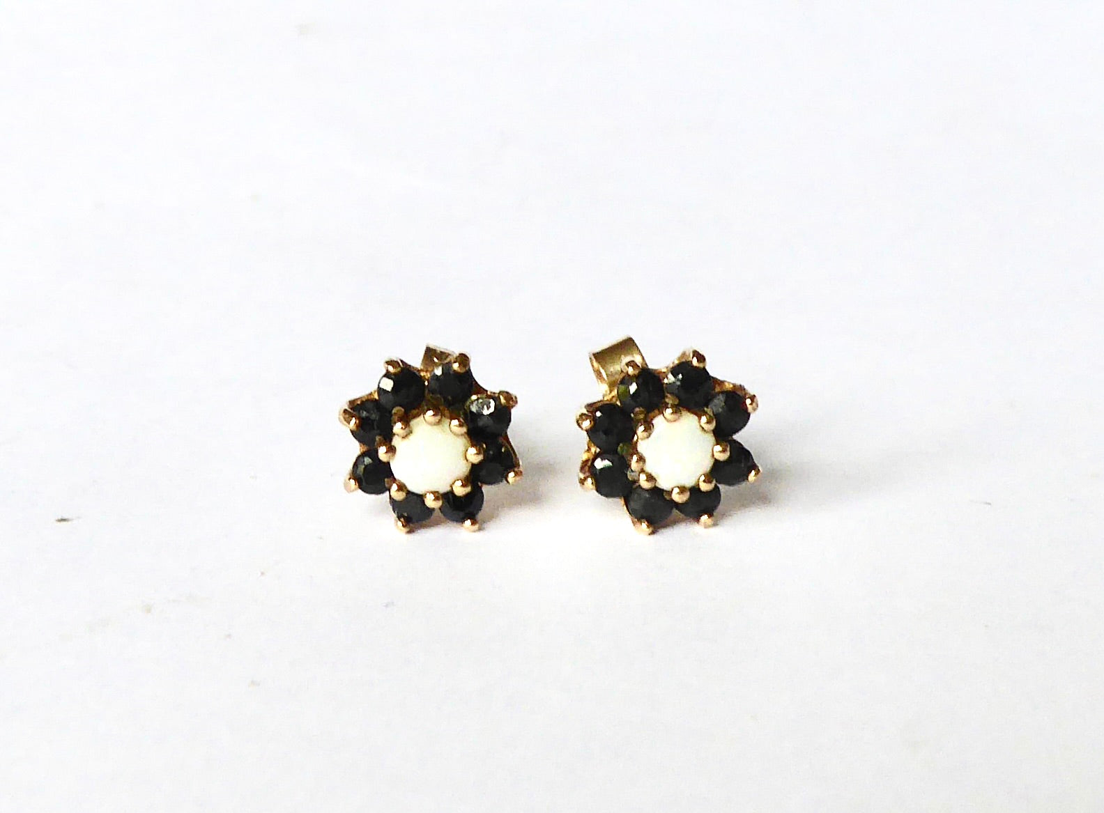 Pair of 9ct. Gold Opal & Sapphire Earrings