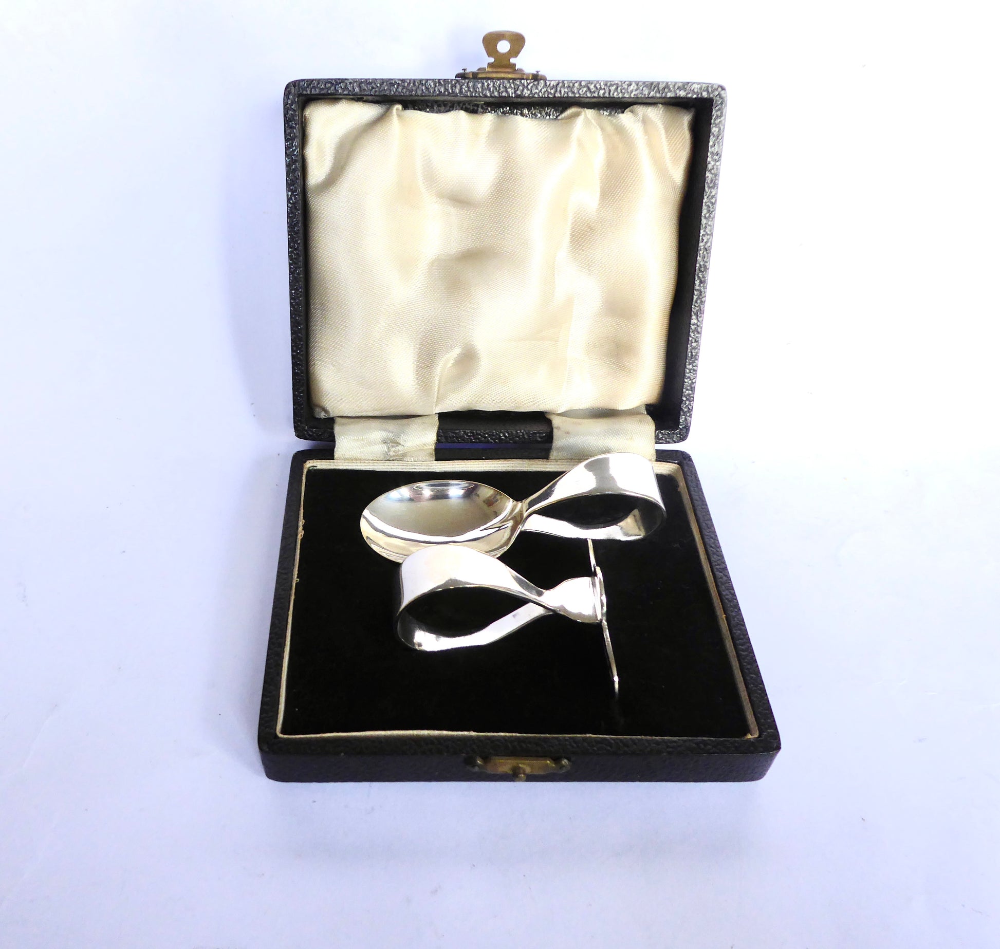 Boxed plain Silver Christening Set - Pusher & Spoon