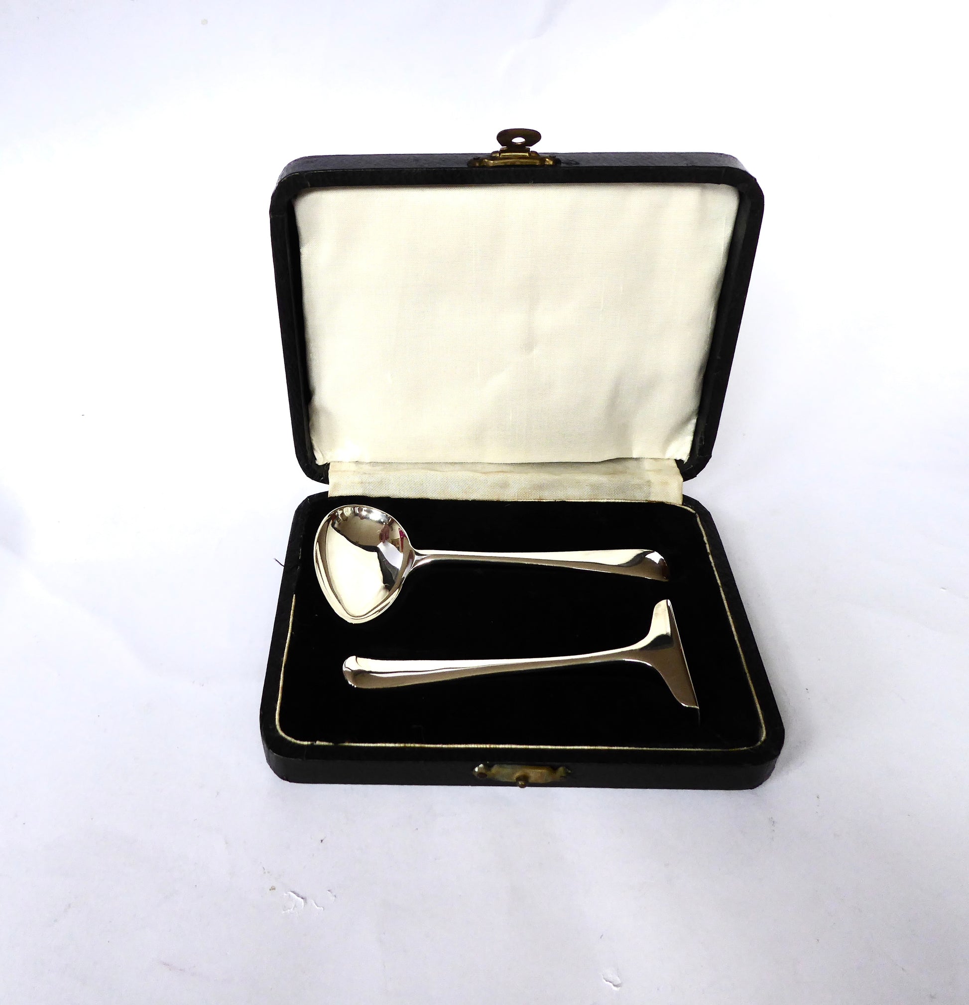Plain Silver Pusher & Spoon Christening Set in original fitted case.