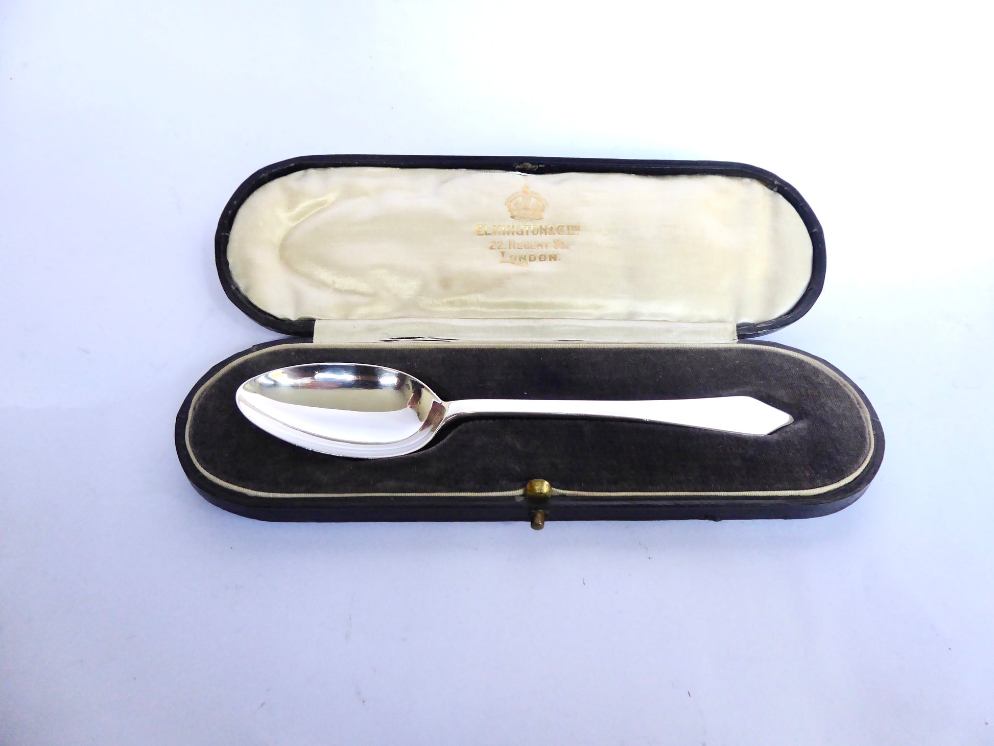 Antique plain Silver Dognose Pattern Christening Spoon. Original fitted case