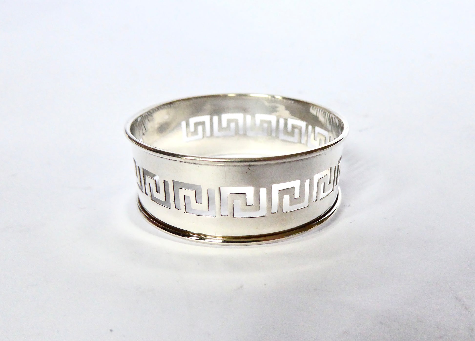 Vintage pierced, Greek Key design, Silver Napkin Ring