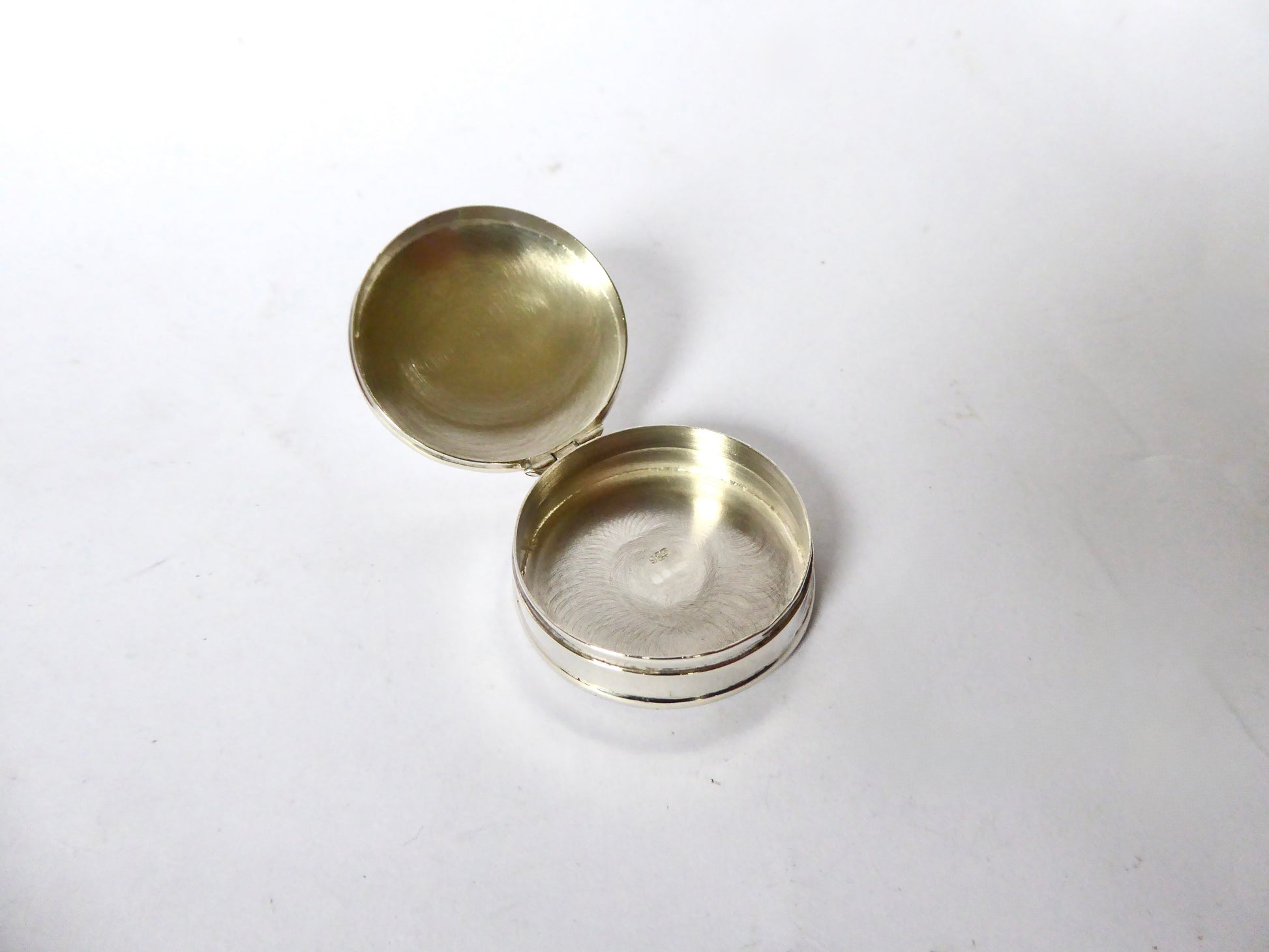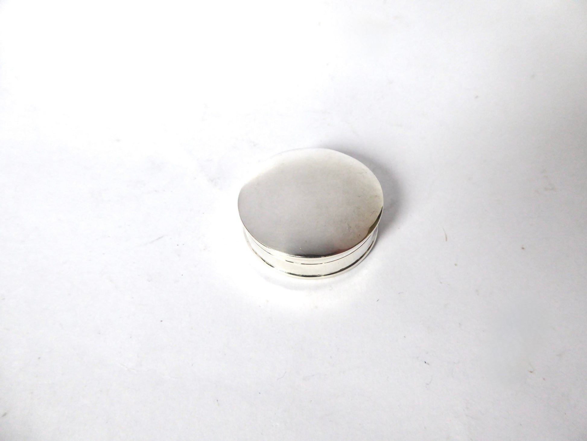 Small circular Silver Box with hinged lid. Suitable for Pills