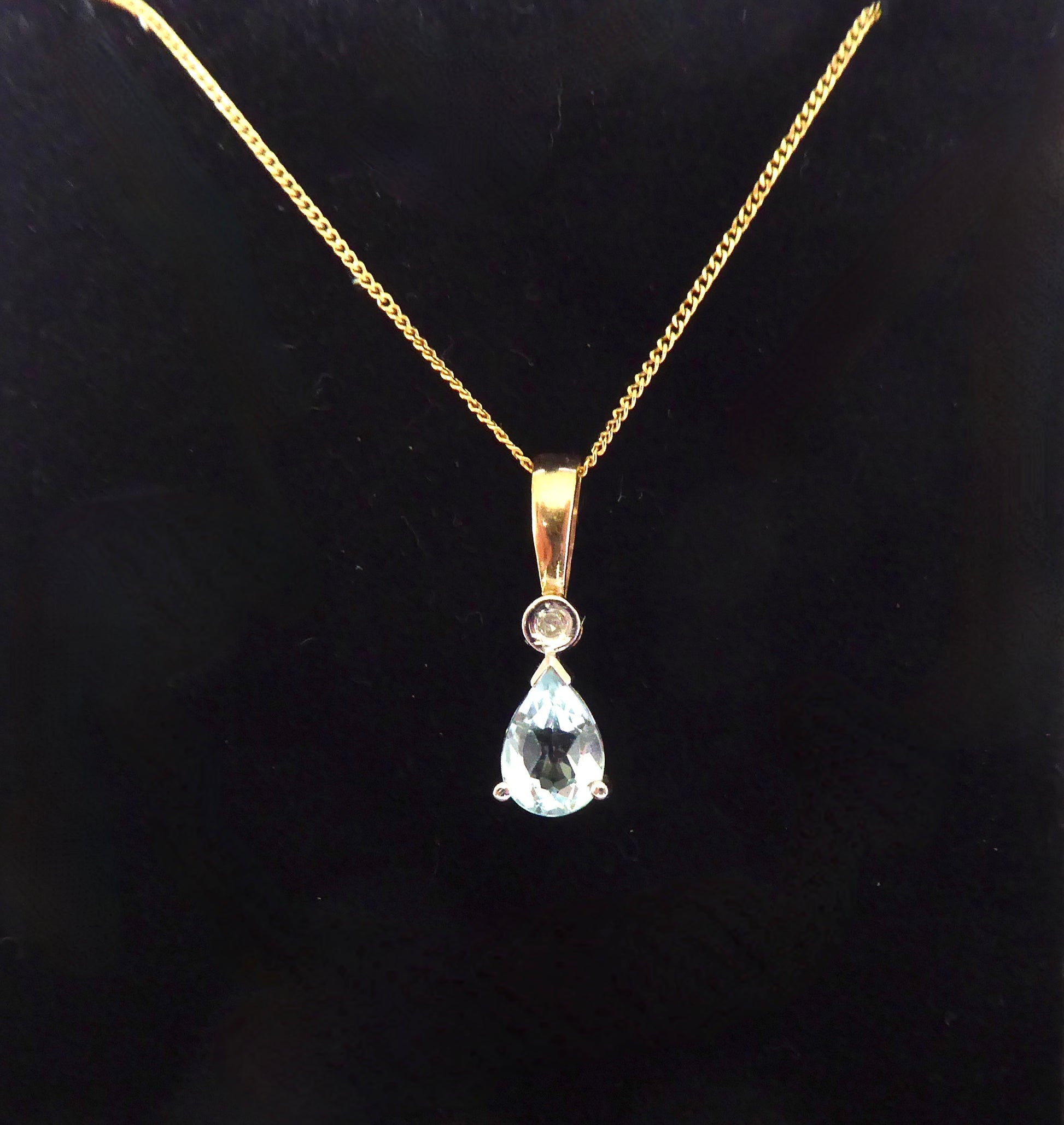 9ct. Gold, Diamond and Topaz Pendant on a 9ct. Gold Chain