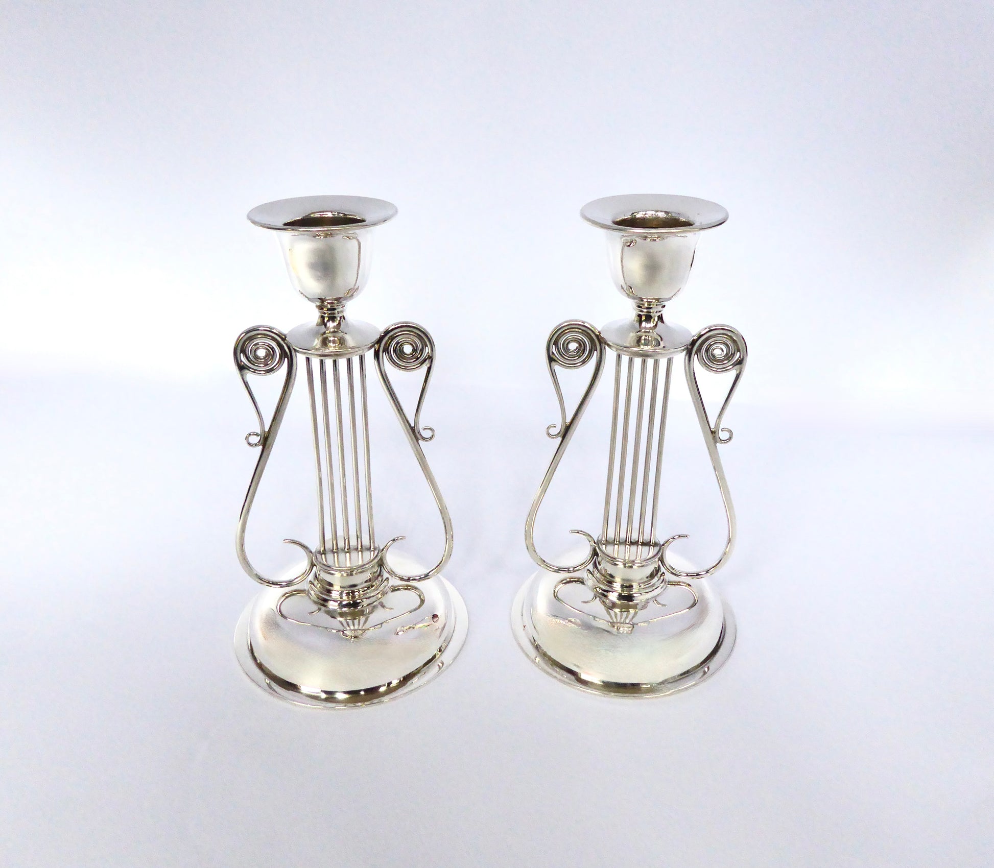 Victorian Silver Lyre Candlesticks 1897